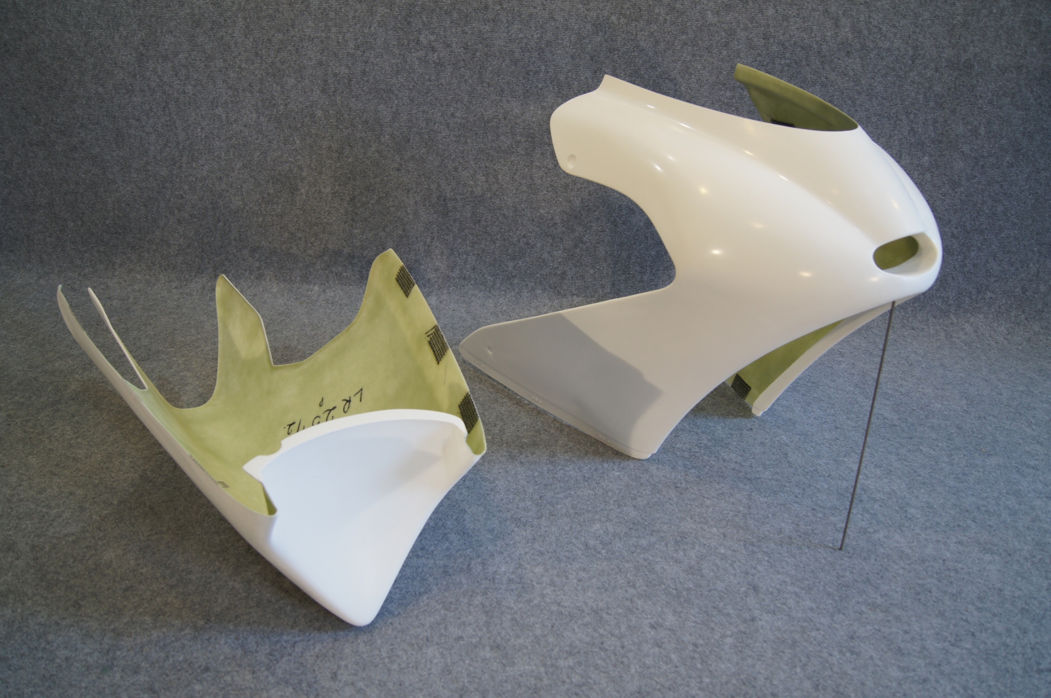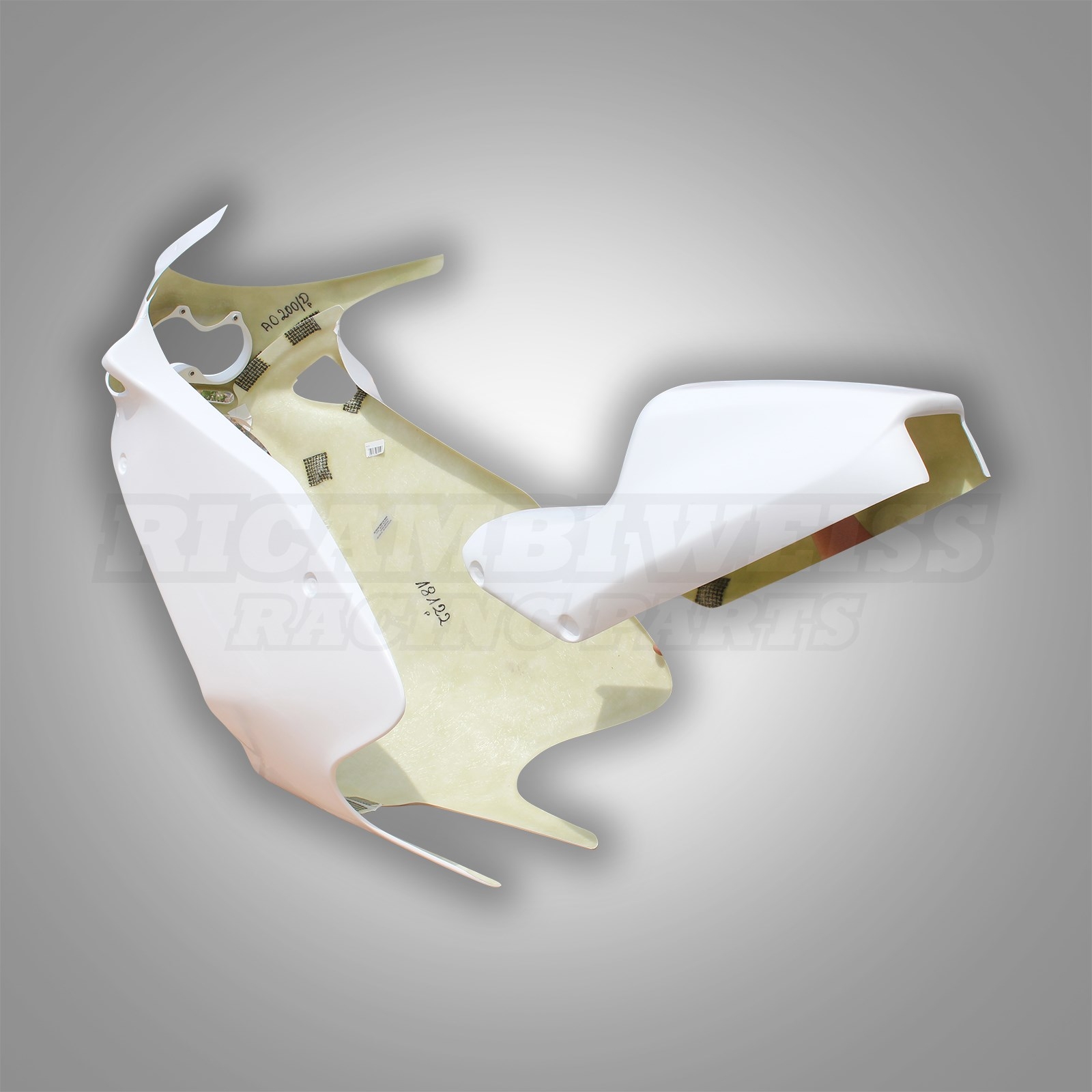 owiewka komplet dwuczęściowy pasujący do modelu KAWASAKI ZX10R roczniki 2004-2005 torowy owiewka w kolorze białym wykonana z wysokiej jakości laminatu miejsca mocowań zaznaczone i wzmocnione tkaniną węglowo-kevlarową w przypadku uszkodzenia któregokolwiek z elementów możliwość zakupienia pojedynczej owiewki
